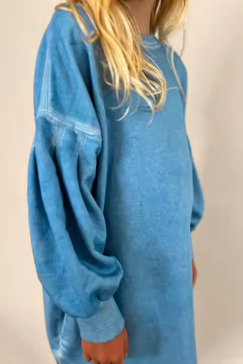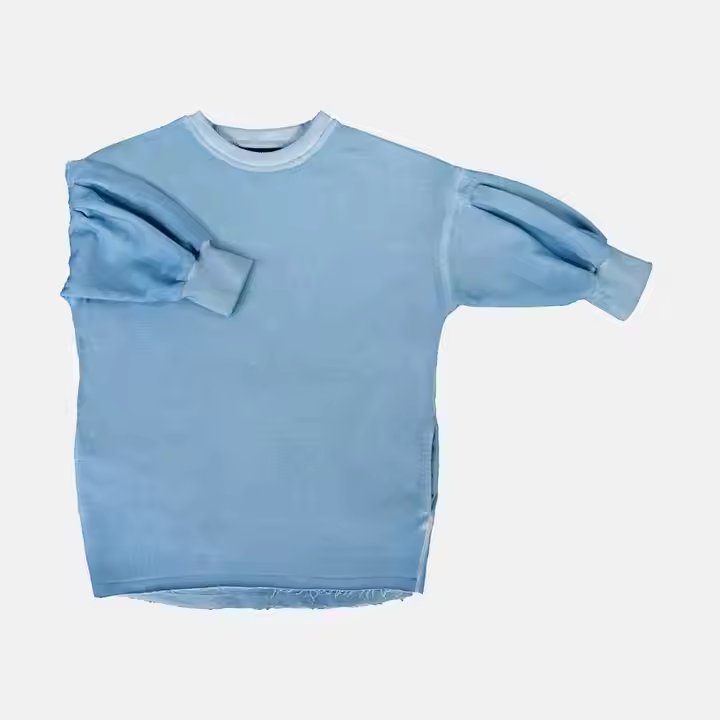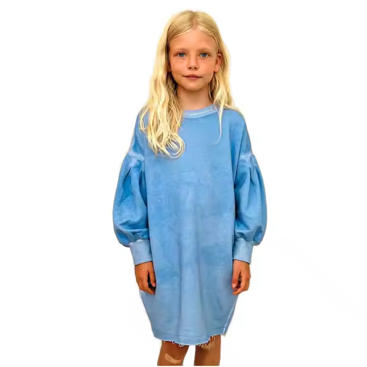 OEM & ODM Girls Cotton Acid Wash Jersey Dress With Balloon Long Sleeves Casual Children's Denim Dress for Girls
