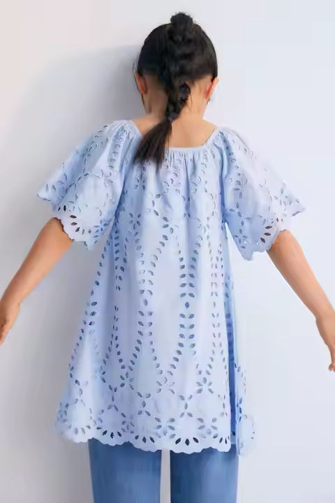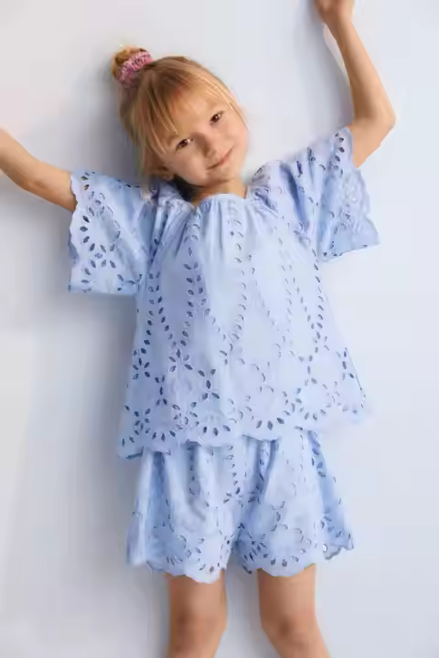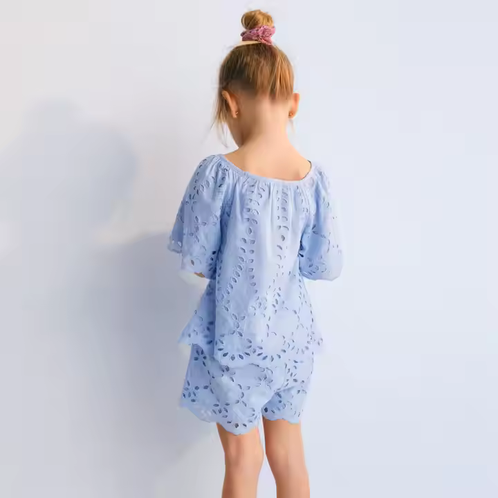 OEM ODM High-End Sky Blue Embroidered Dress Girls' Two-Piece Summer Collection Matching Sets for Brothers and Sisters