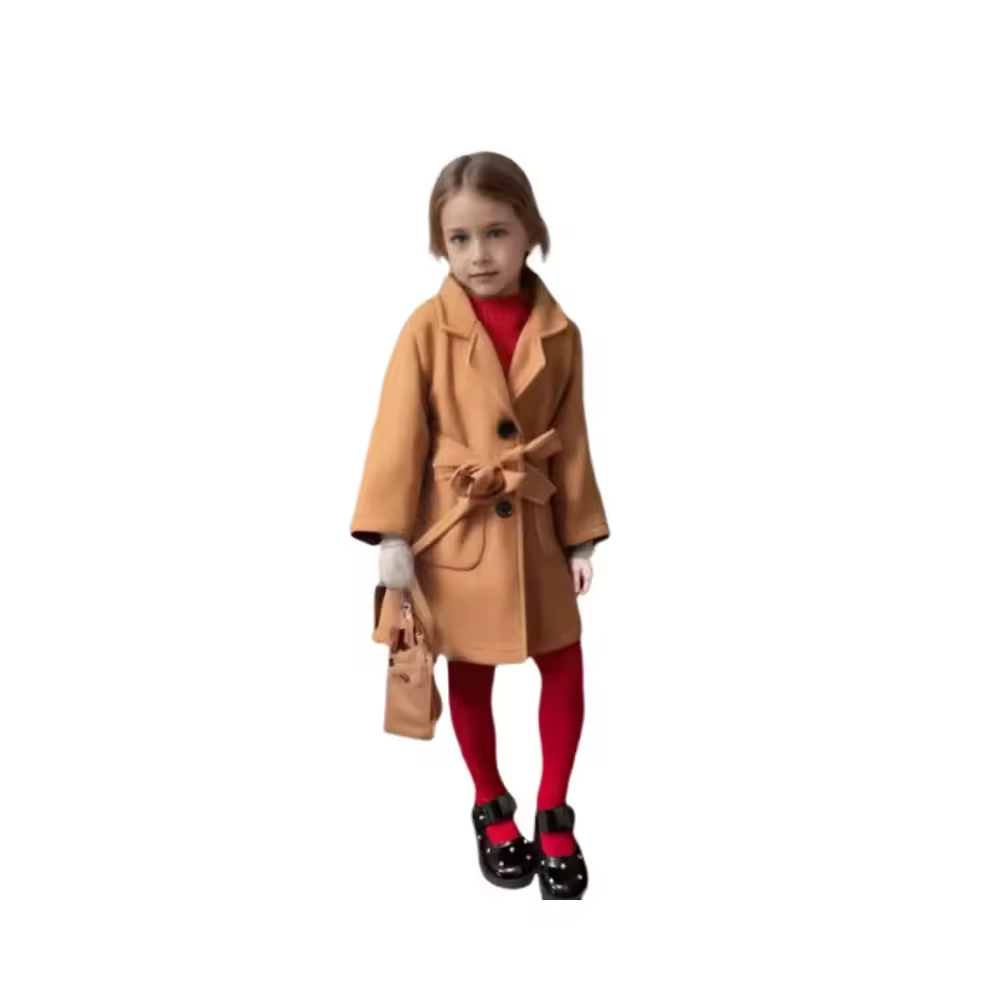 Girl's Clothing Long Coat Thick Soft Wool Coat With Belt Pocket Warm For Baby Girl's Jacket Factory Manufacturing