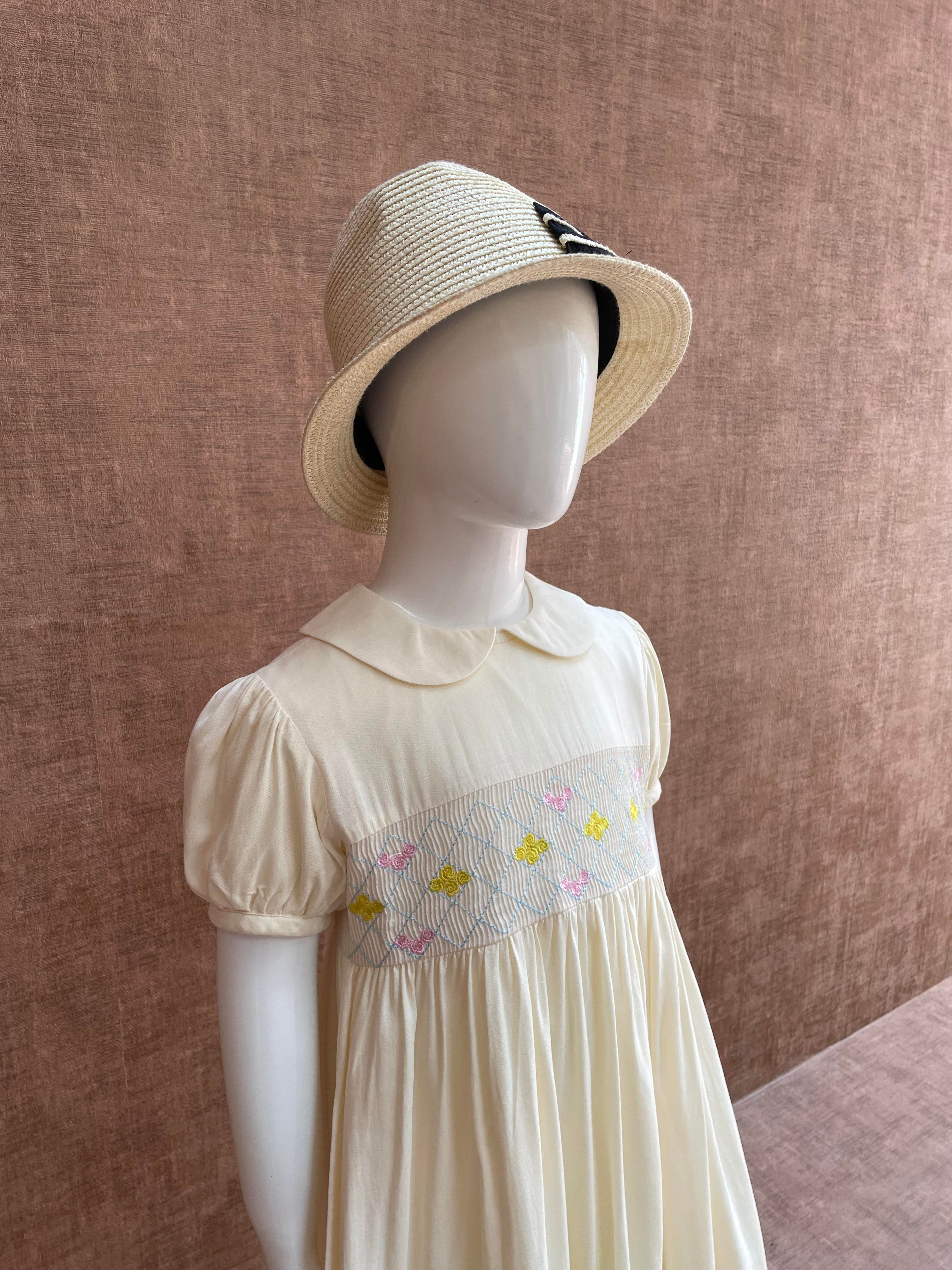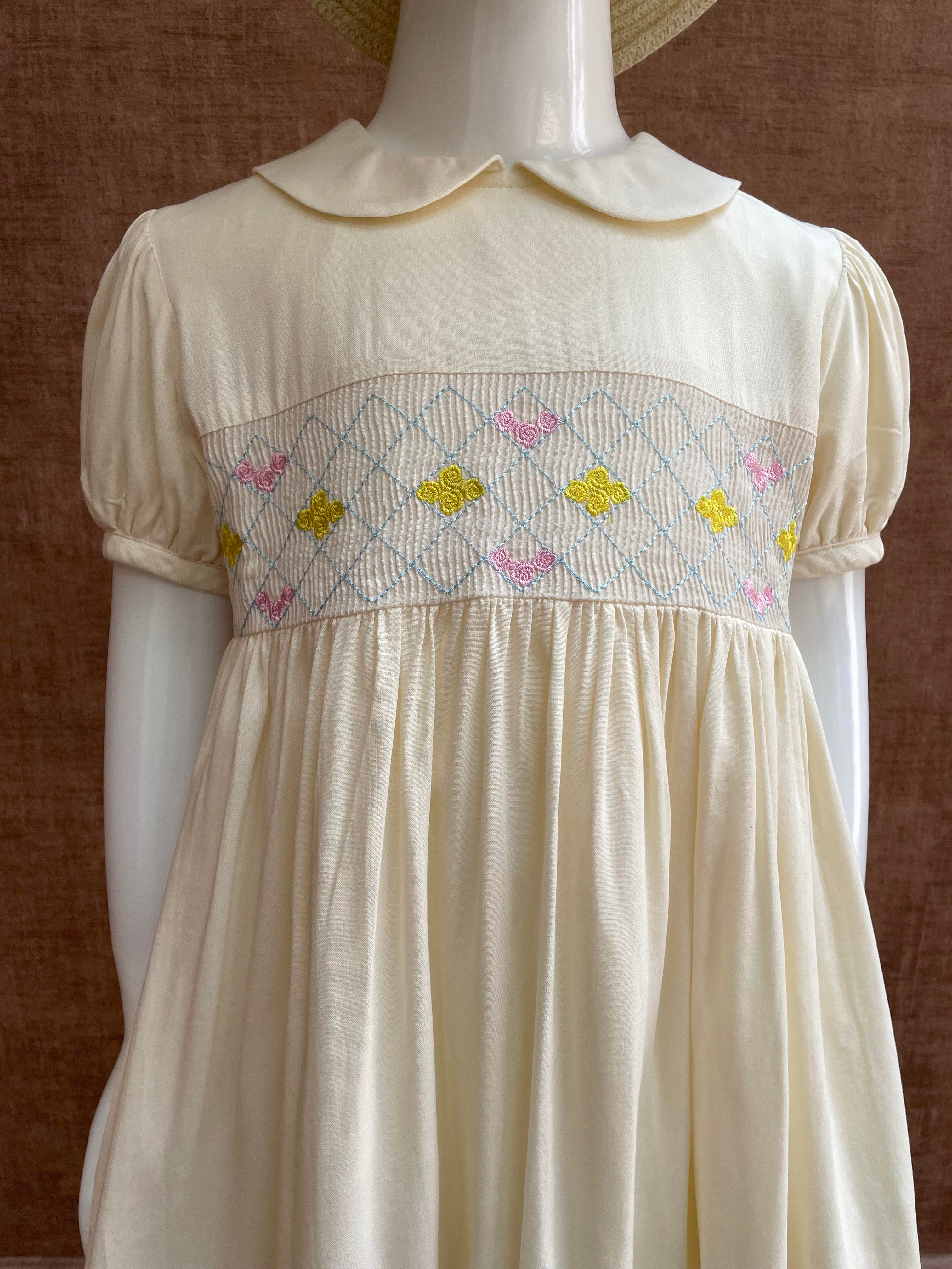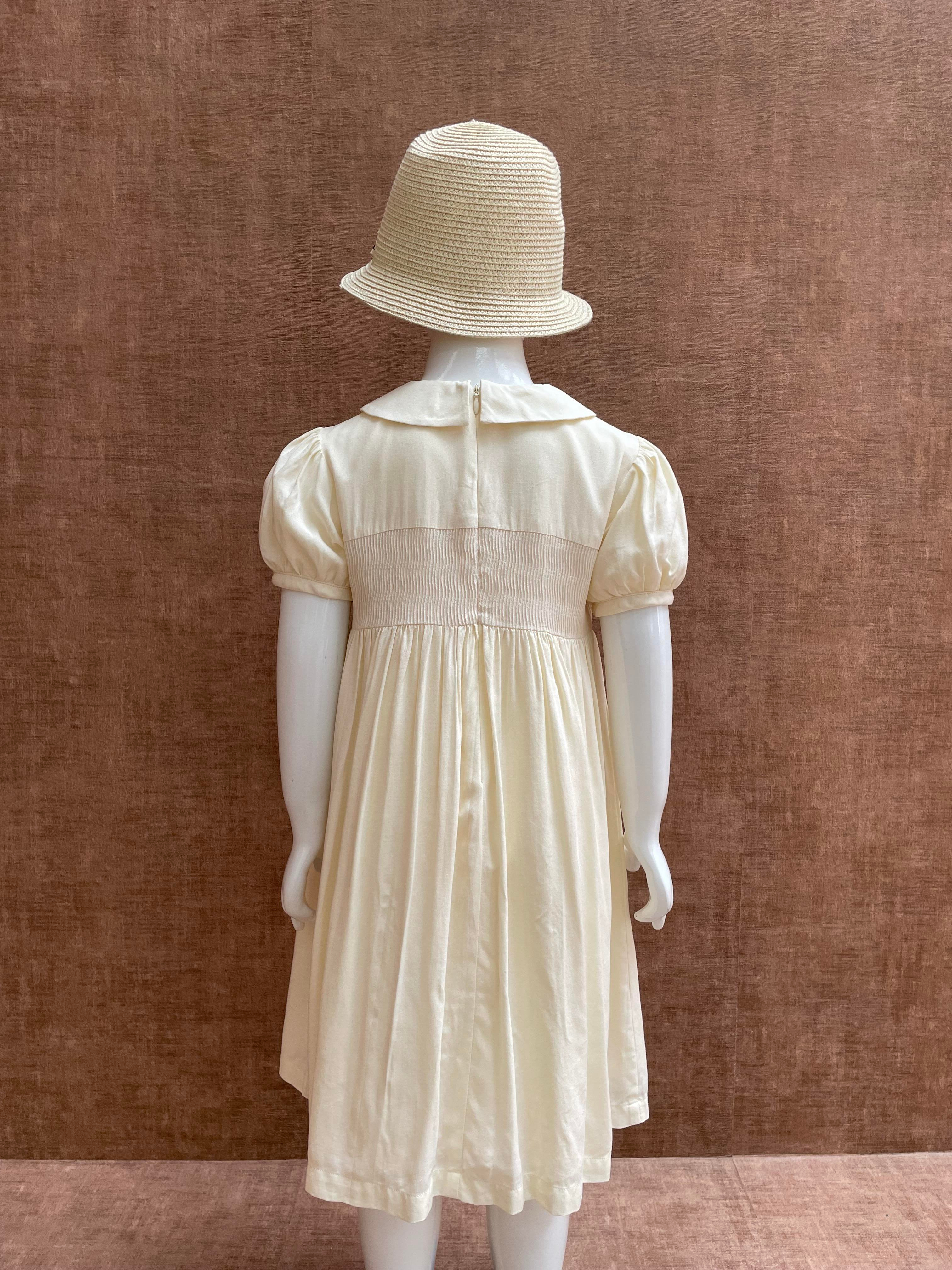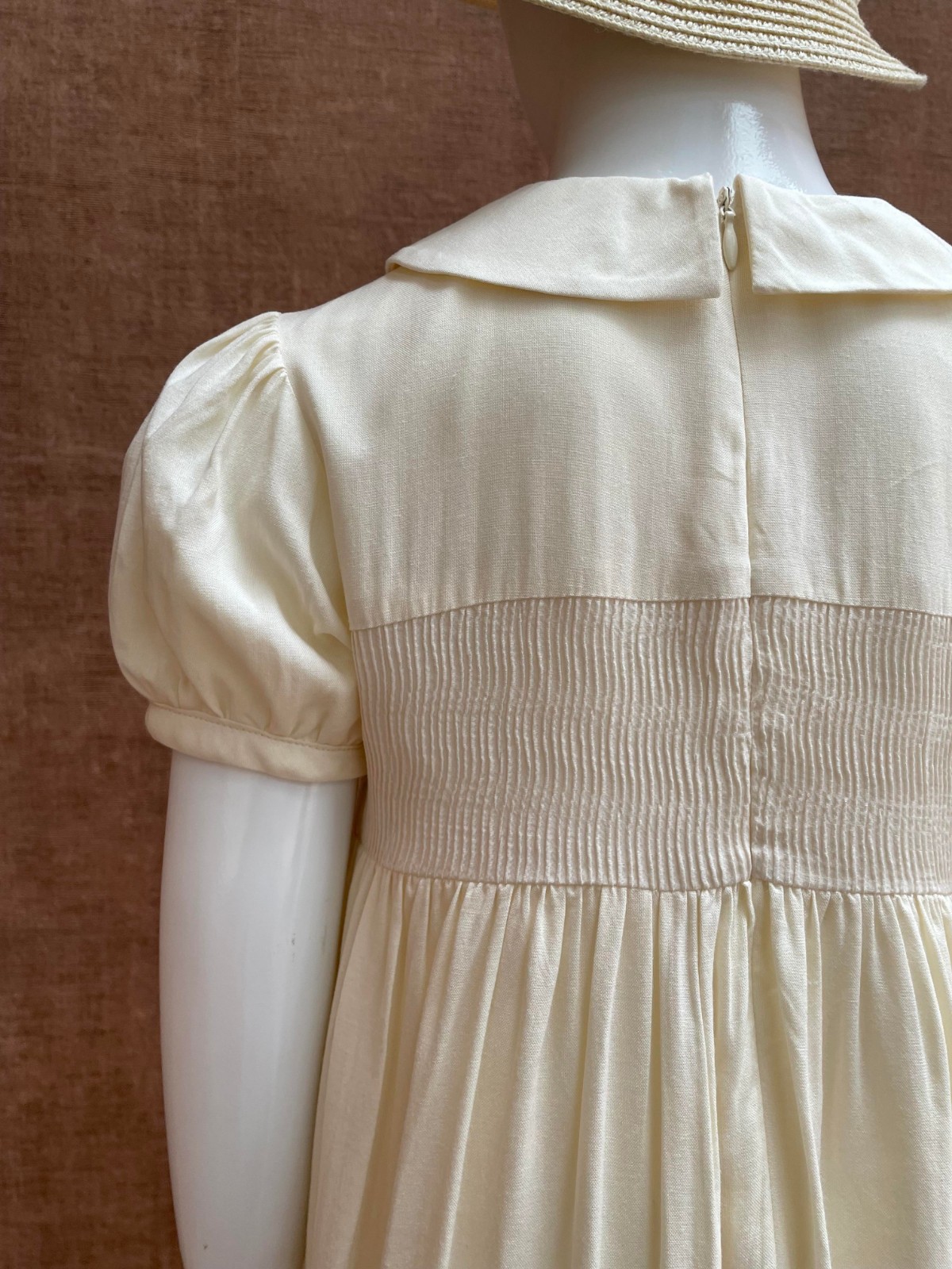 2025 Fashion Design Summer Casual Dress Rayon Cotton Shape Collar Embroider & Smocking at Chest Kids Girl Dresses