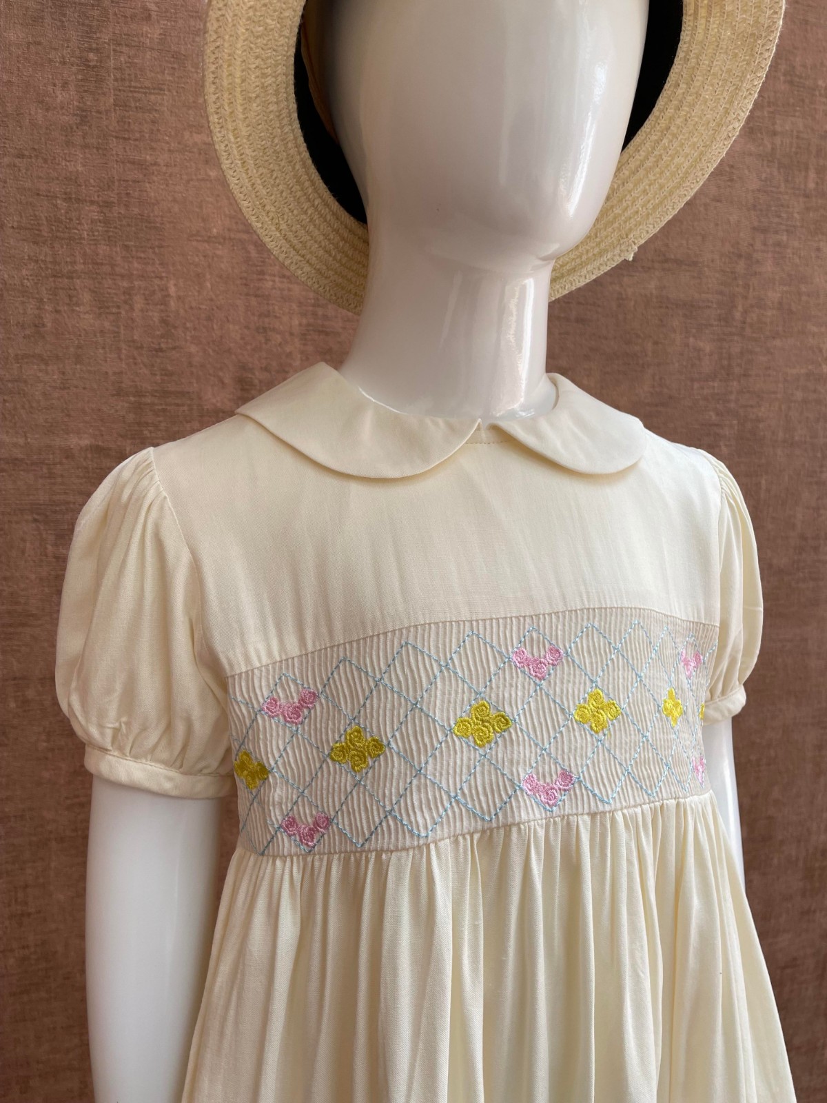 /2025 Fashion Design Summer Casual Dress Rayon Cotton Shape Collar Embroider & Smocking at Chest Kids Girl Dresses
