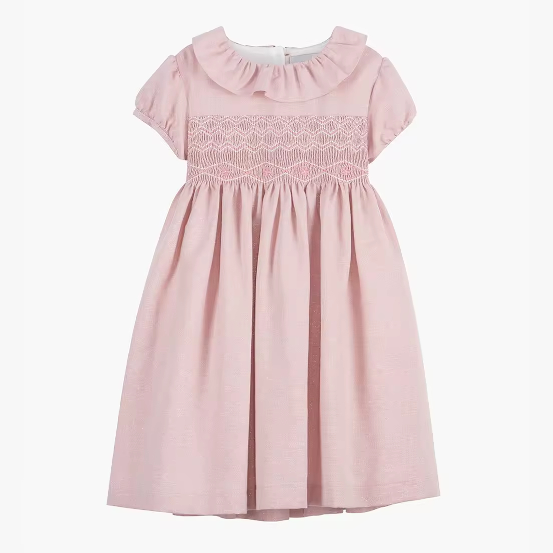 Custom pink or Gold Shimmer Linen Cotton Toddler Girls Dress Children Clothing Summer New Arrive Smocked Children Clothing