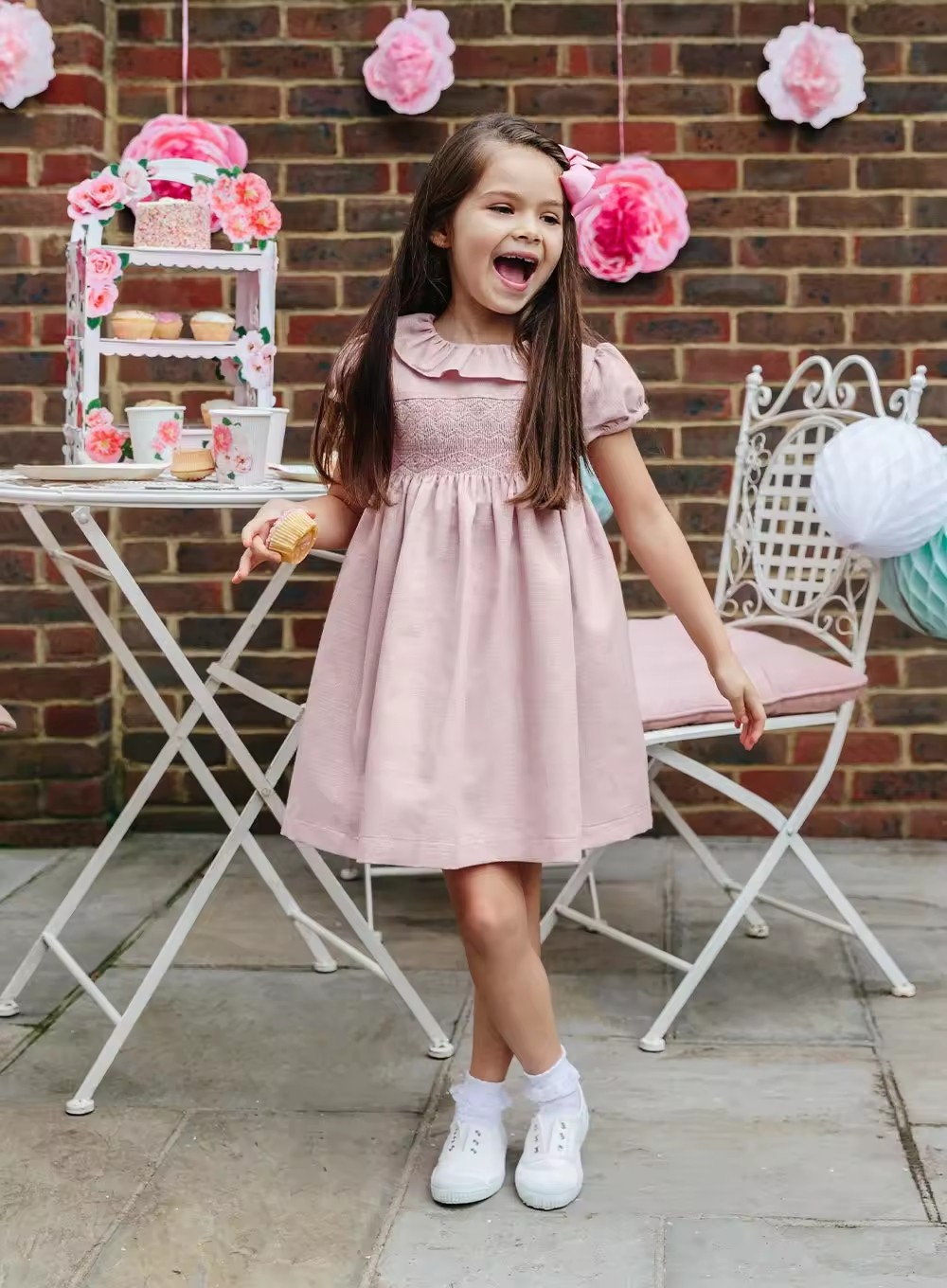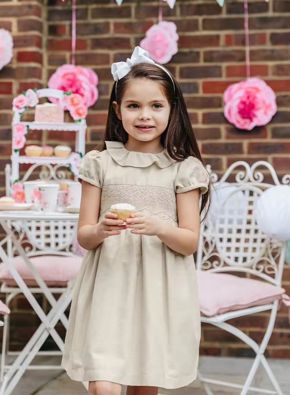 /Custom pink or Gold Shimmer Linen Cotton Toddler Girls Dress Children Clothing Summer New Arrive Smocked Children Clothing