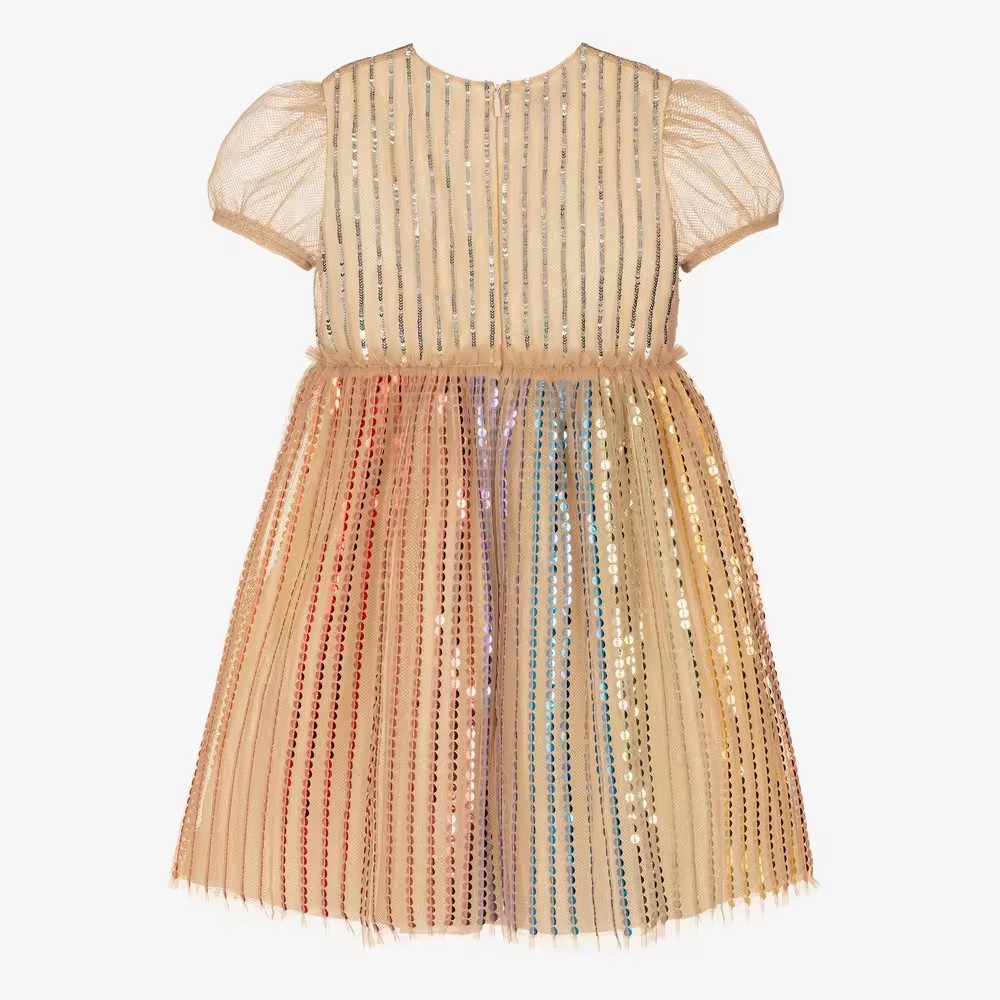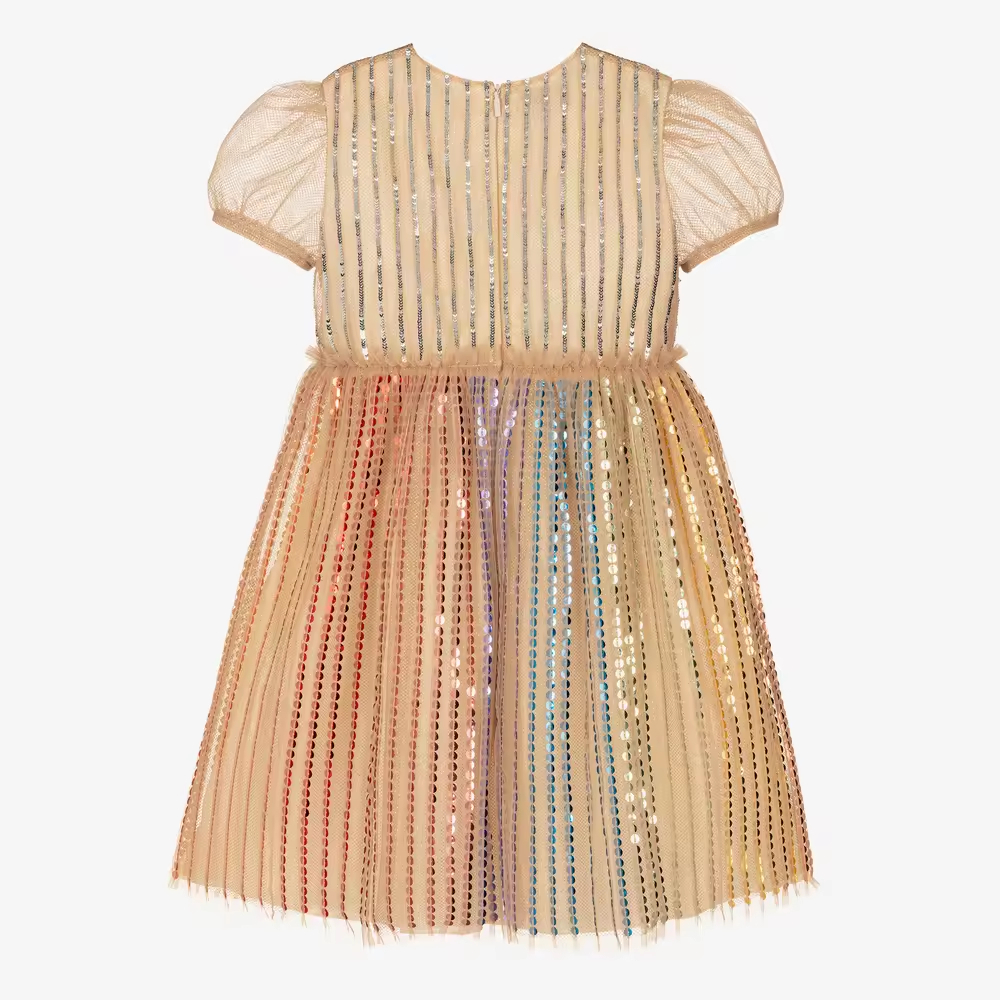 Latest Fashion Kids Casual Dresses Sequin Tulle Fabric with Beading Knee-Length ODM Supply Summer Style China Wholesale