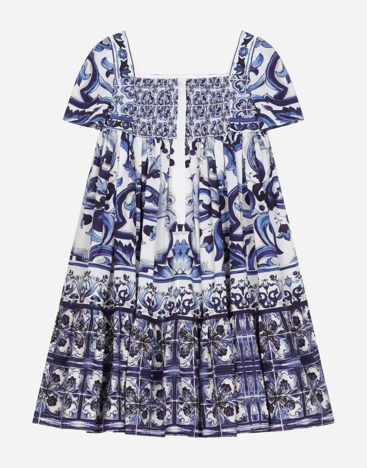 Newest 100% Cotton Short-Sleeved Girls' Dress for Kids Summer Plus Size ODM Floral Print Long Length