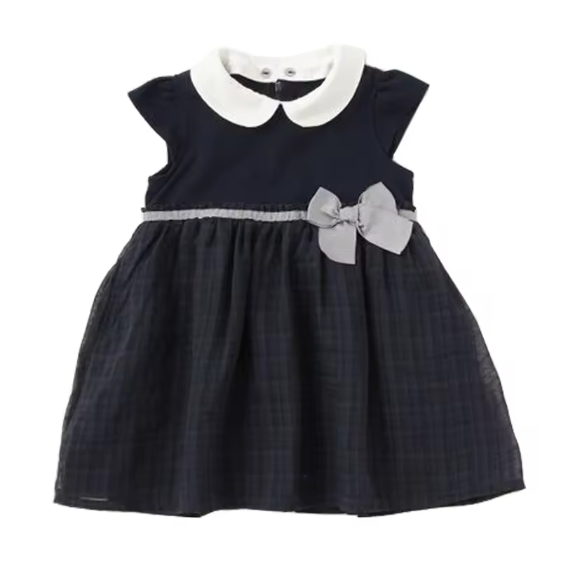 Young Girl's Formal Short Sleeve Dress ODM Guangzhou Female Dress With Print Pattern and Bow Decoration for Babies X Years+
