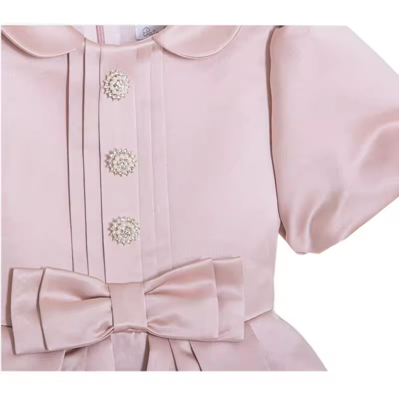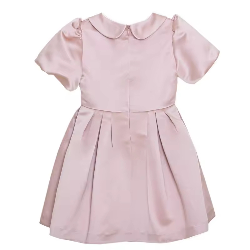 2025 Children's Formal A-Line Dress With Short Sleeves and Bow Decoration Satin Fabric for 13 and 14 Year Old Girls
