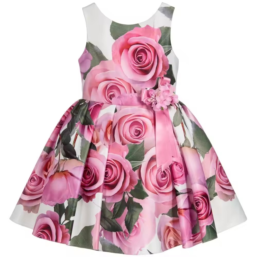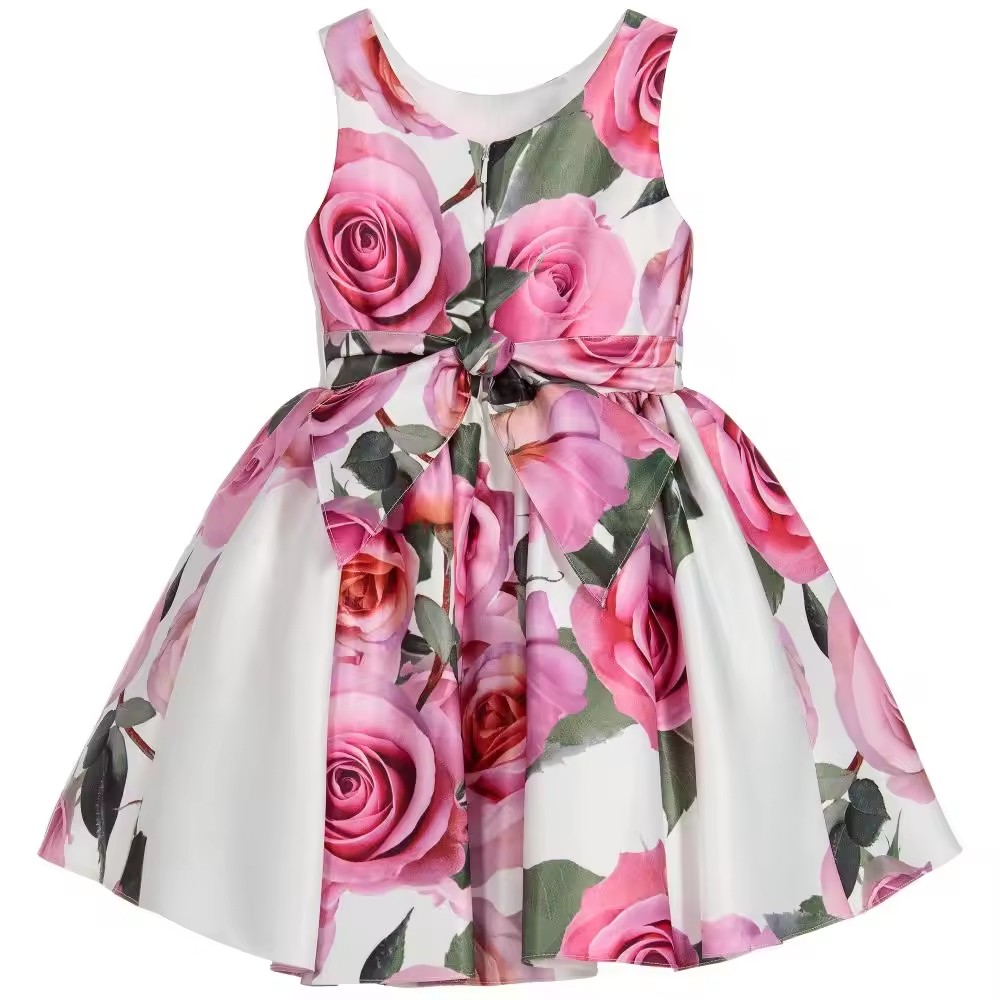 Boutique Style Floral Print Toddler Girls Dresses 6 to 10 Years Sleeveless Child Summer Dress With Bow Belt at Back