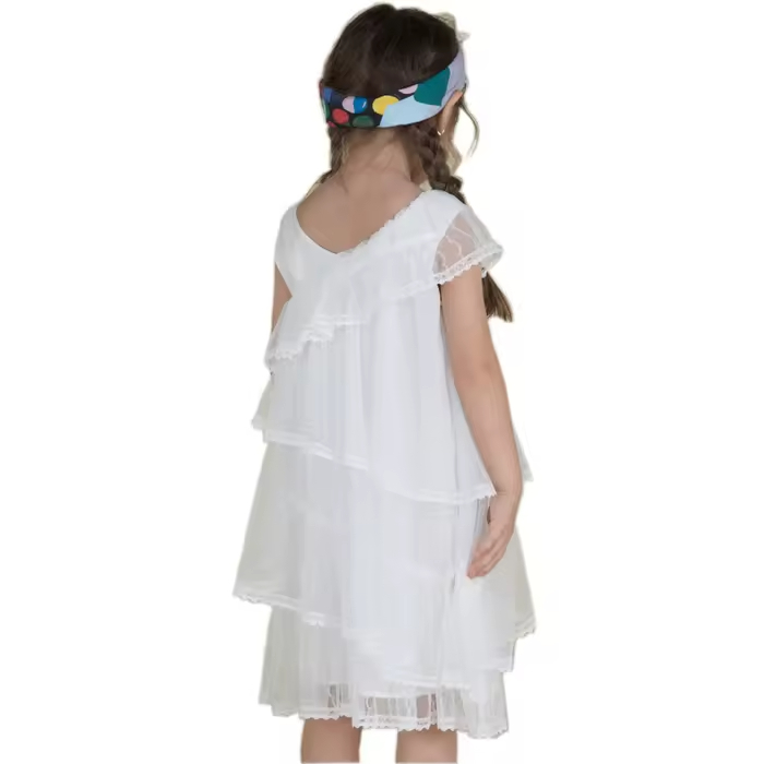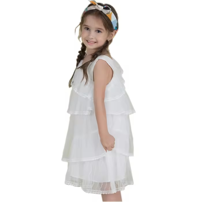 OEM & ODM Girls' Elegant Knee-Length Dress Sleeveless with Ruffles Formal Summer Fashion in Chiffon for Children