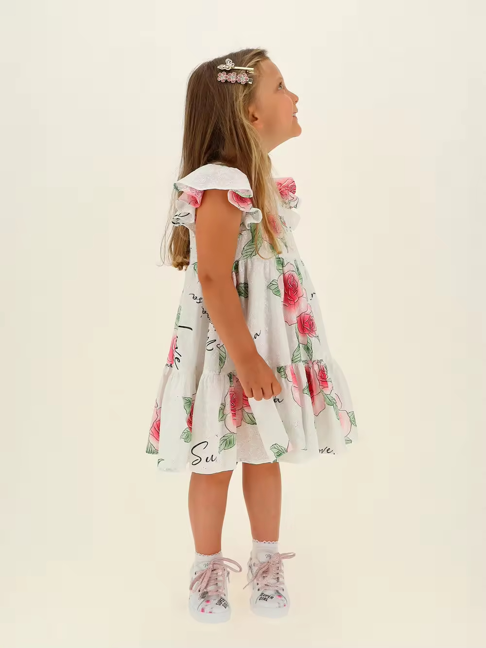 1.Girls Dress in White/black color, quality cotton fabric and a vintage style.