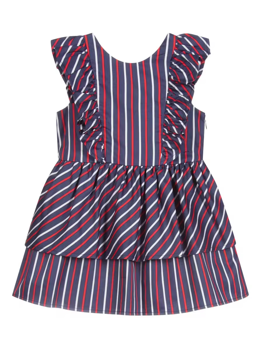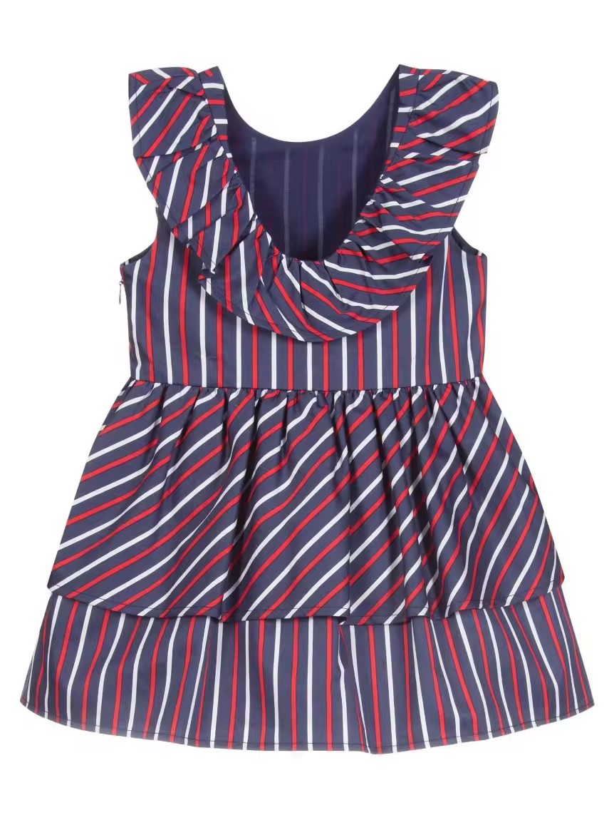 /Guangzhou Custom 2025 Summer Kids Apparel Hot New Striped Woven Clothes with Ruffles Decoration for Children