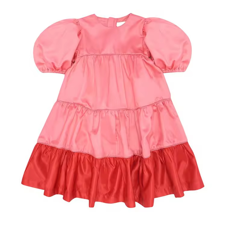 /OEM Service Bright Color Fashion Short Sleeve Summer Prom Dress Loose High Quality Knee Length Party Toddler Dresses for Girls