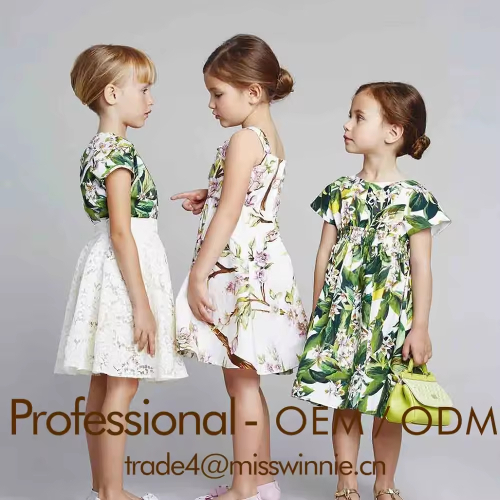 New Design Mini-Length Girls Dress Summer Fashion Short Sleeve 100% Cotton Printed Fabric ODM Supply for Any Occasion