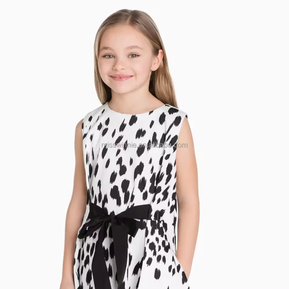 1.Girls Dress in White/black color, quality cotton fabric and a vintage style.