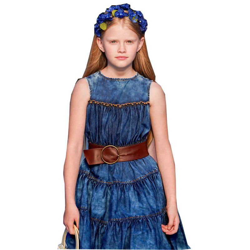 /Washed Denim Girl Dresses 6 to 14 Years Customized Dress for SS20 Collection