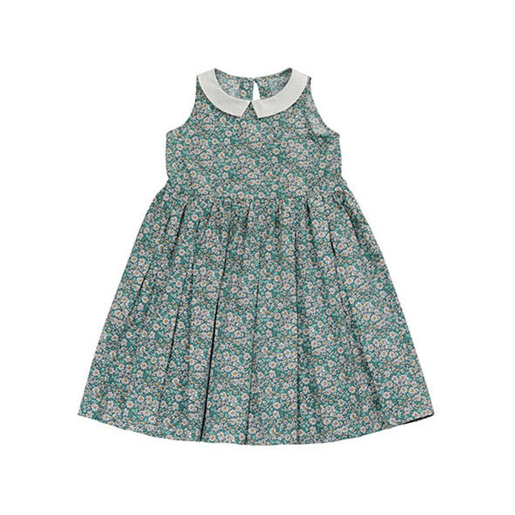 /2025 Summer Vintage Casual Crew Neck Sleeveless Knee-Length Floral 100% Cotton A-Line Breathable Dress for Girls