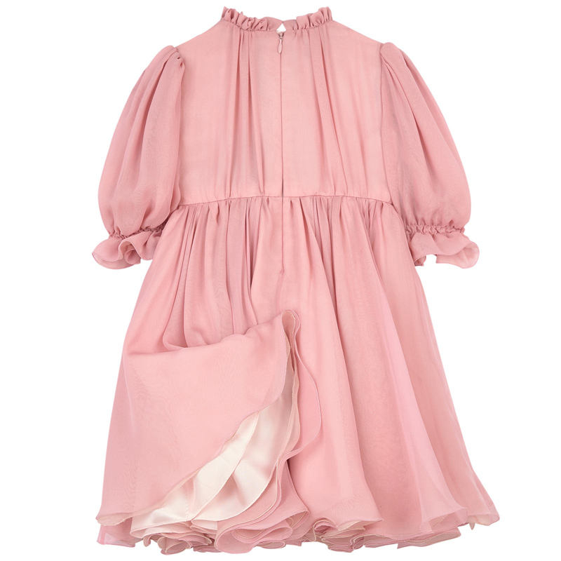 China Manufacturer's Girls Evening Dress for Birthday Formal Chiffon with Solid Pattern Flower Decoration for Autumn Season