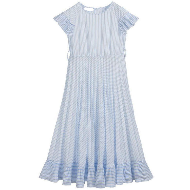 /White and Blue Stripes Dress Designs for Small Girls Lovely Girls Cotton Kids Dress Photo