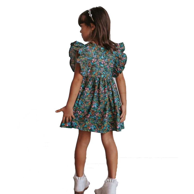 Custom Kids Clothing Girls Allover Printing Ruffles Summer Toddler Dress